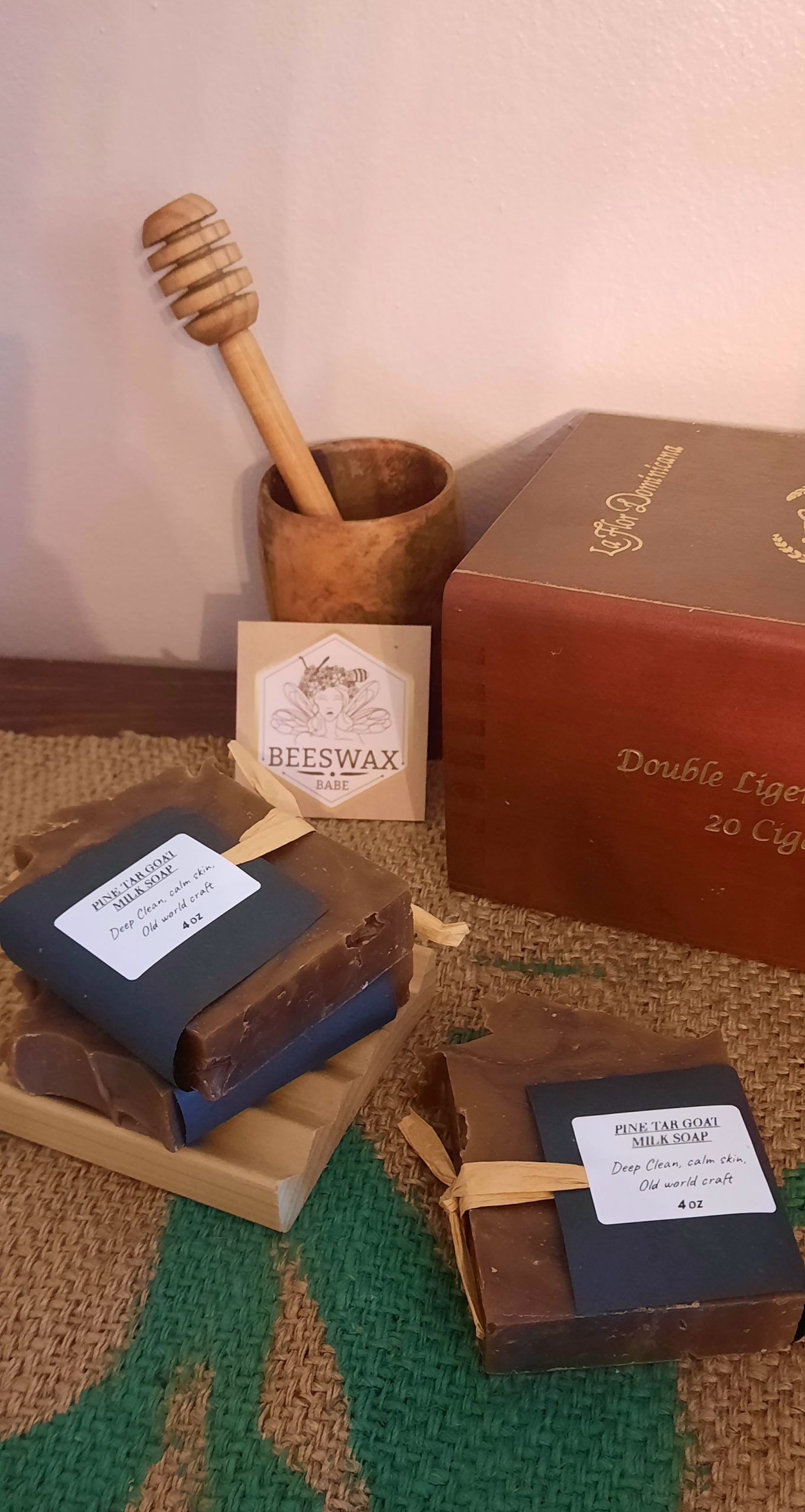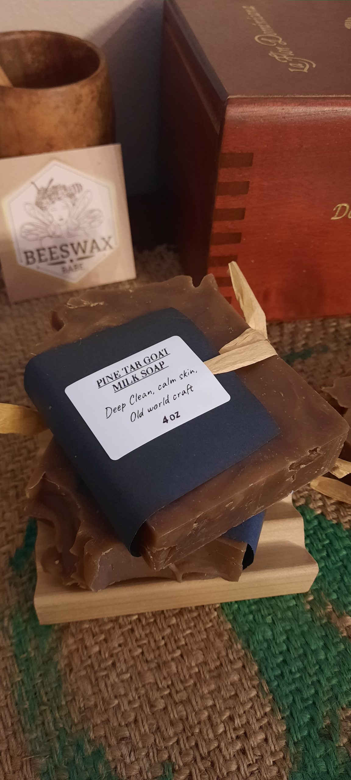 Ingredients: Saponified Oils of Olive, Coconut Oil, Castor, Shea Butter, Pine Tar, Goat Milk