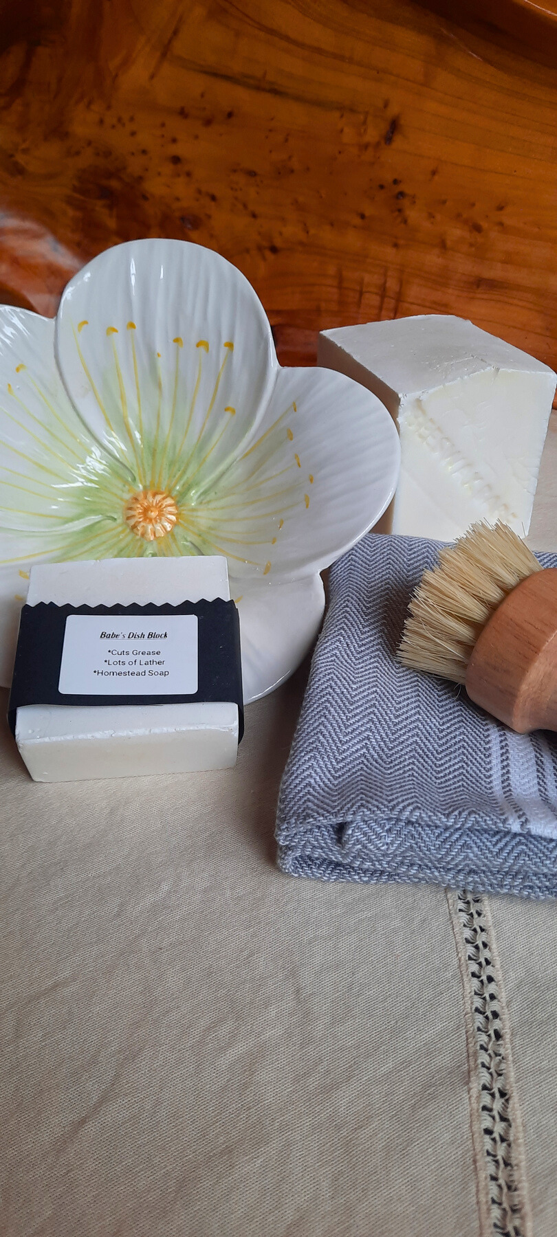 Crafted in small batches using simple, natural ingredients, the Dish Brick delivers a rich lather that cuts through grease while lasting far longer than traditional liquid soaps. The included brush is designed for effective, everyday scrubbing, while the draining soap dish helps extend the life of your bar by keeping it dry between uses. A reusable dish towel completes the set, making it easy to reduce waste without sacrificing performance or style.